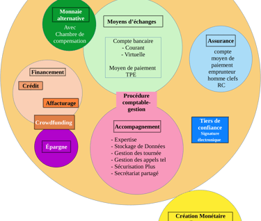 Moyens de paiements, compte courant dans les différentes monnaies officielles et alternatives.